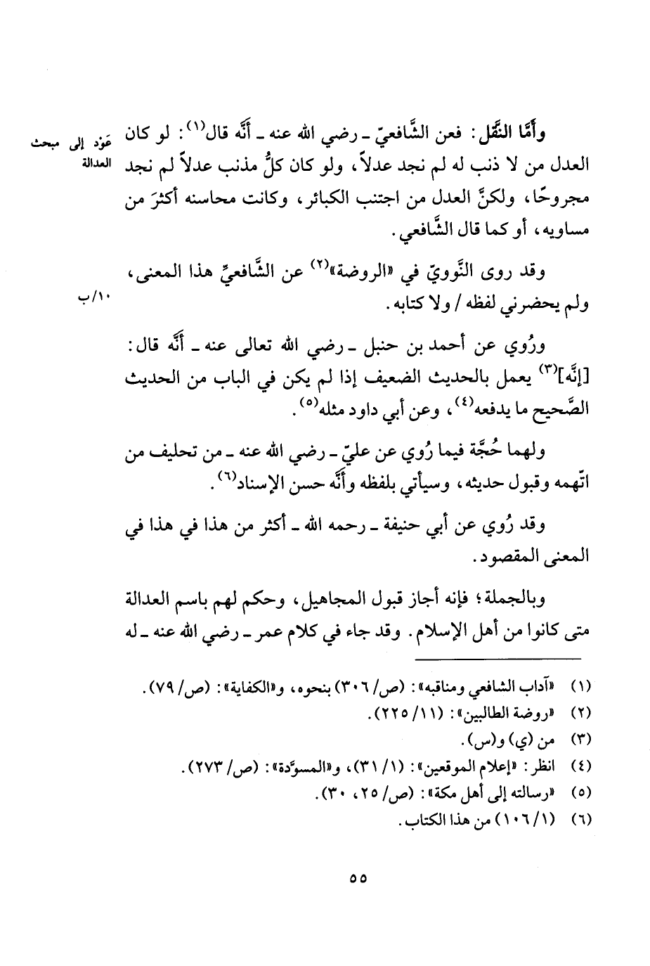 وأما النّقل: فعن الشّافعي - رضي الله عنه - أنّه قال (¬1): لو كان العدل من لا ذنب له لم نجد عدلاً, ولو كان كلّ مذنب عدلاً لم نجد مجروحاً, ولكنّ العدل من اجتنب الكبائر, وكانت محاسنه أكثر من مساويه, أو كما قال الشّافعي.