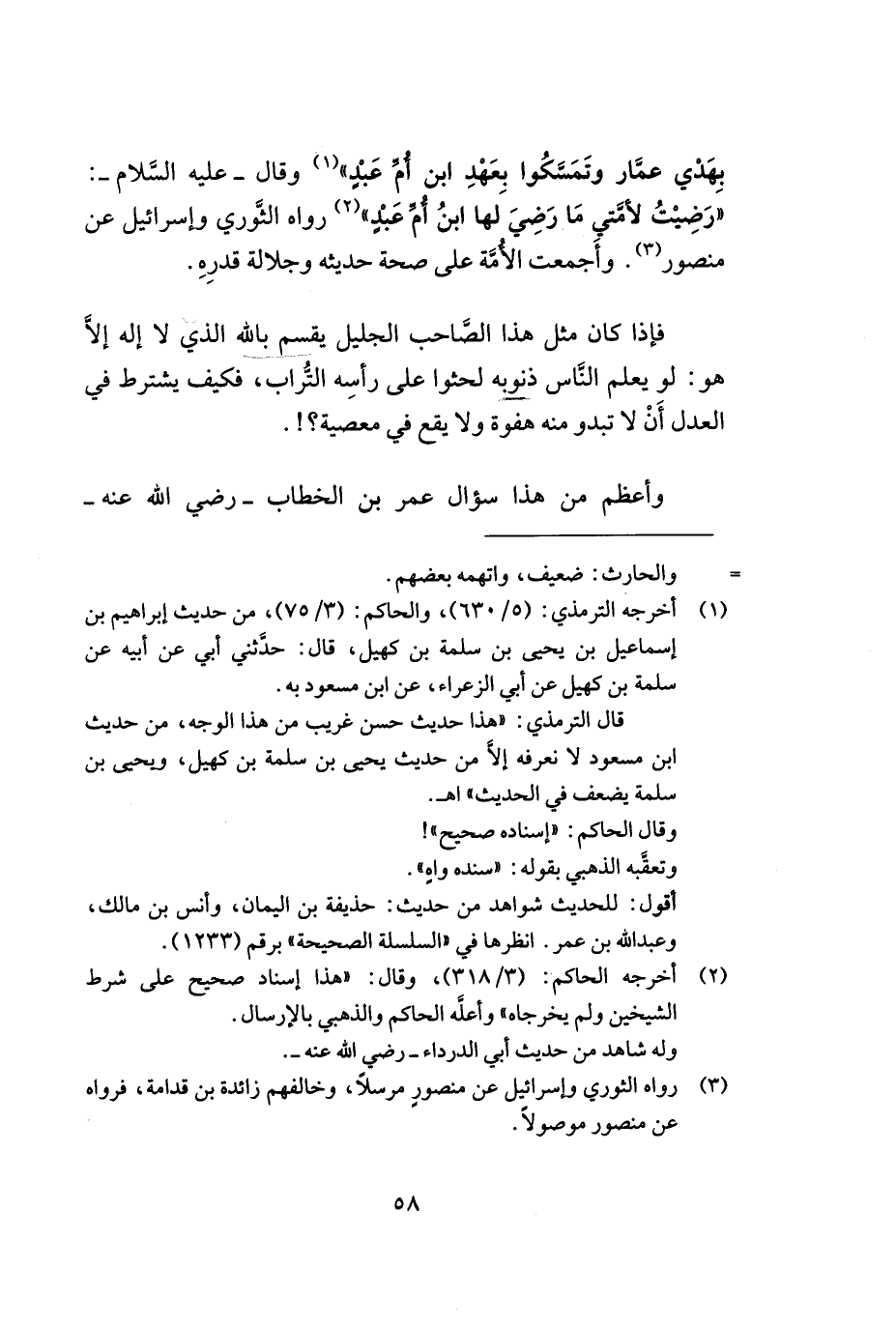 بهدي عمّار وتمسّكوا بعهد ابن أم عبد)) (¬1) وقال - عليه السلام -: ((رضيت لأمّتي ما رضي لها ابن أم عبد)) (¬2) رواه الثّوري وإسرائيل عن منصور (¬3). وأجمعت الأمّة على صحة حديثه وجلالة قدره.