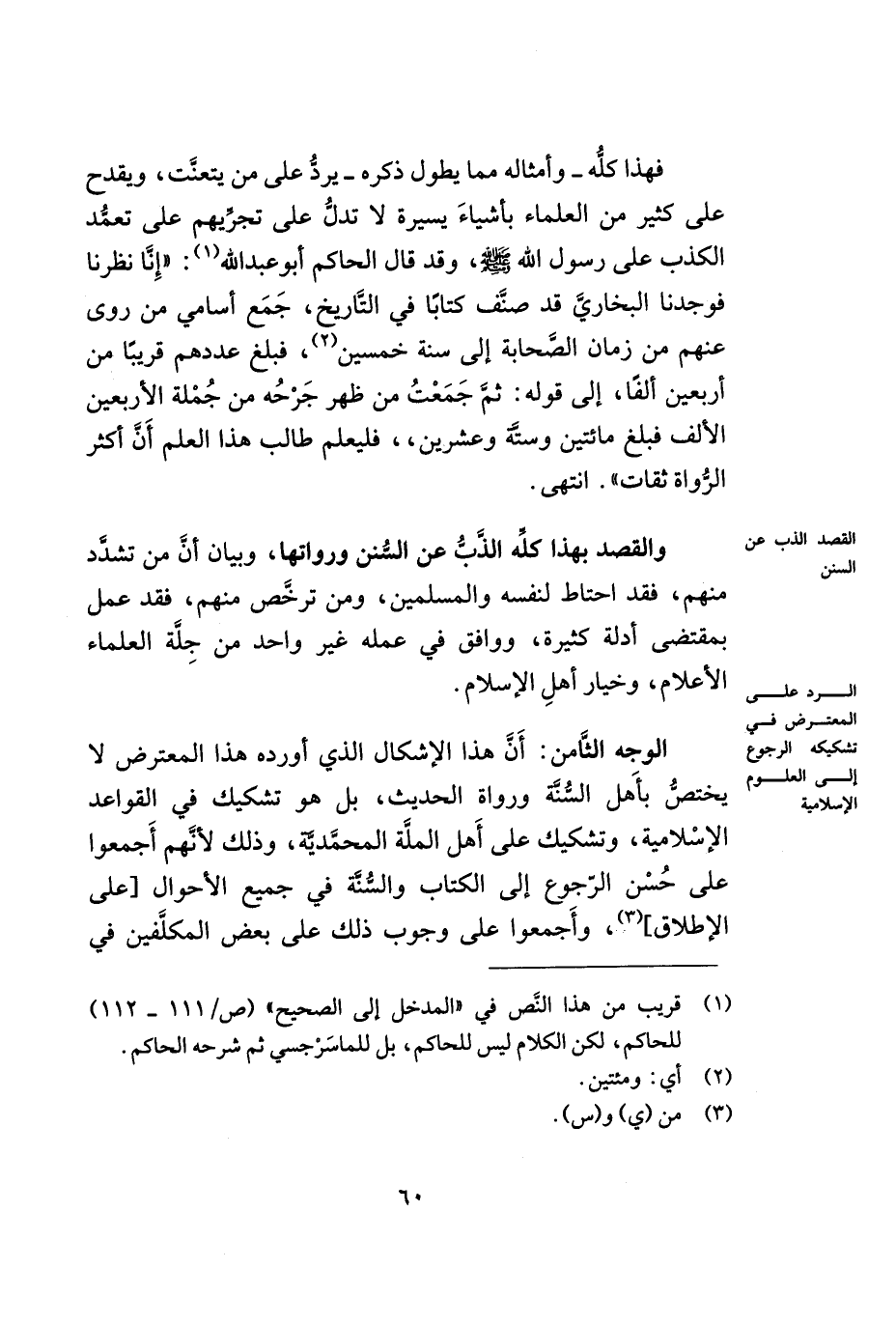 (¬1) قريب من هذا النص في ((المدخل إلى الصحيح)) (ص/11 - 112) للحاكم, لكن الكلام ليس للحاكم, بل للماسَرْجسي ثم شرحه الحاكم.