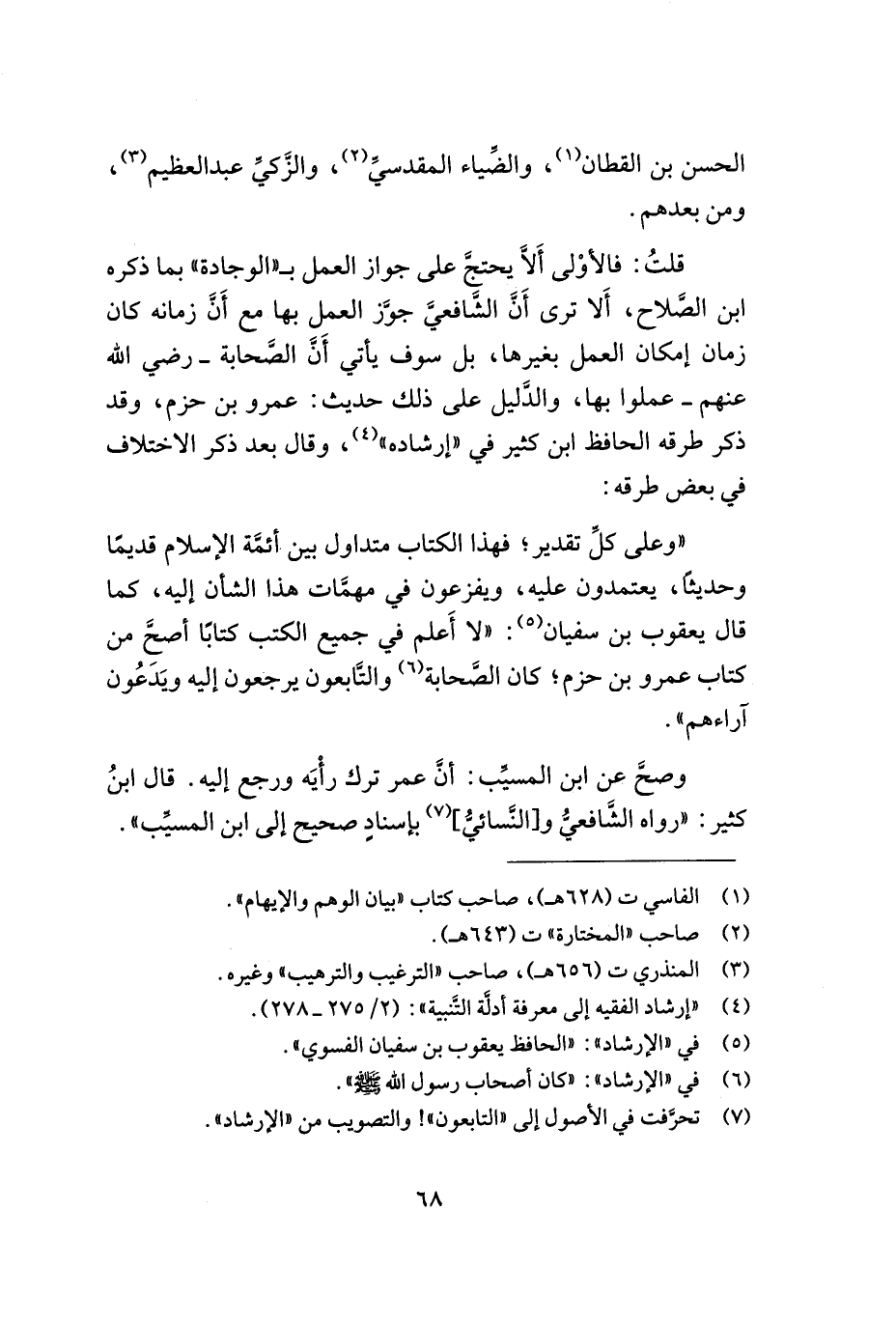 قلت: فالأولى ألا يحتج على جواز العمل بـ ((الوجادة)) بما ذكره ابن الصلاح, ألا ترى أنّ الشّافعي جوّز العمل بها مع أنّ زمانه كان زمان إمكان العمل بغيرها, بل سوف يأتي أنّ الصّحابة -رضي الله عنهم- عملوا بها, والدّليل على ذلك حديث: عمرو بن حزم, وقد ذكر طرقه الحافظ ابن كثير في ((إرشاده)) (¬4) , وقال بعد ذكر الاختلاف في بعض طرقه: