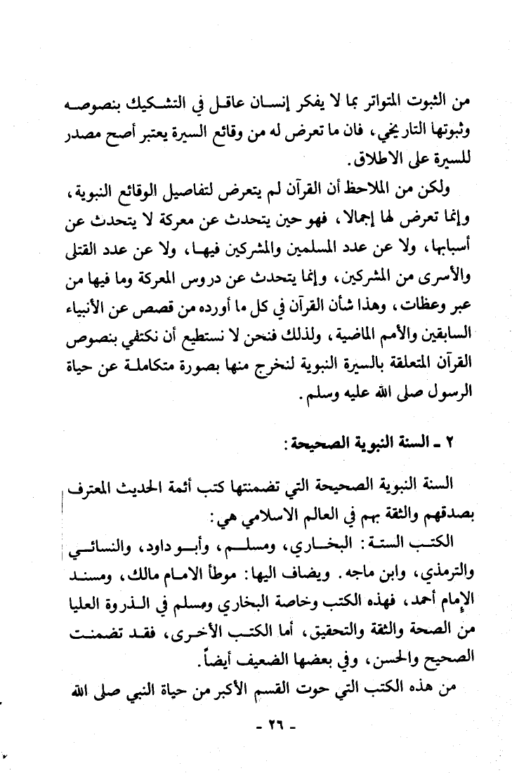 ولكن من الملاحظ أن القرآن لم يتعرض لتفاصيل الوقائع النبوية، وإنما تعرض لها إجمالا، فهو حين يتحدث عن معركة لا يتحدث عن أسبابها، ولا عن عدد المسلمين والمشركين فيها، ولا عن عدد القتلى والأسرى من المشركين، وإنما يتحدث عن دروس المعركة وما فيها من عبر وعظات، وهذا شأن القرآن في كل ما أورده من قصص عن الأنبياء السابقين والأمم الماضية، ولذلك فنحن لا نستطيع أن نكتفي بنصوص القرآن المتعلقة بالسيرة النبوية لنخرج منها بصورة متكاملة عن حياة الرسول صلى الله عليه وسلم.