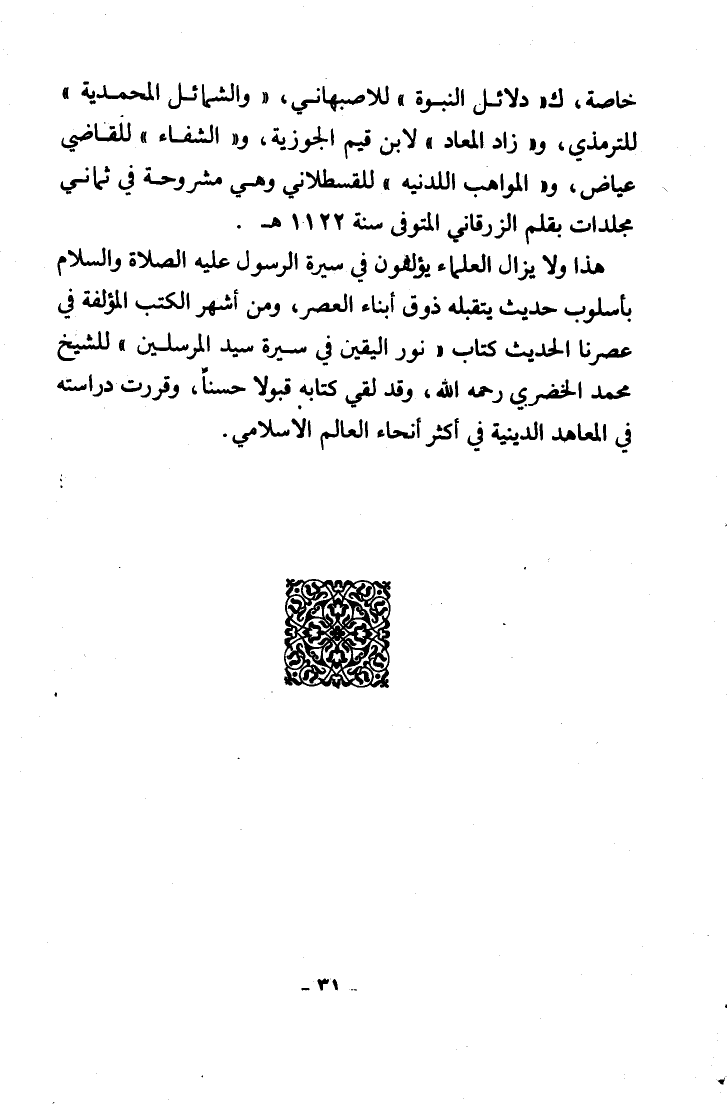 خاصة، كـ «دلائل النبوة» للأصبهاني، و «الشمائل المحمدية» للترمذي، و «زاد المعاد» لابن قيم الجوزية، و «الشفاء» للقاضي عياض، و «المواهب اللدنية» للقسطلاني وهي مشروحة في ثماني مجلدات بقلم الزرقاني المتوفى سنة 1122هـ.