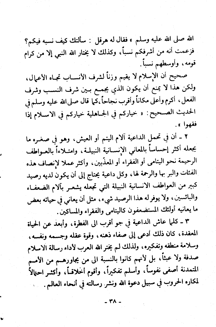 صحيح أن الإسلام لا يقيم وزنا لشرف الأنساب تجاه الأعمال، ولكن هذا لا يمنع أن يكون الذي يجمع بين شرف النسب وشرف الفعل، أكرم وأعلى مكانا وأقرب نجاحا، كما قال صلى الله عليه وسلم في الحديث الصحيح: «خياركم في الجاهلية خياركم في الإسلام إذا فقهوا».