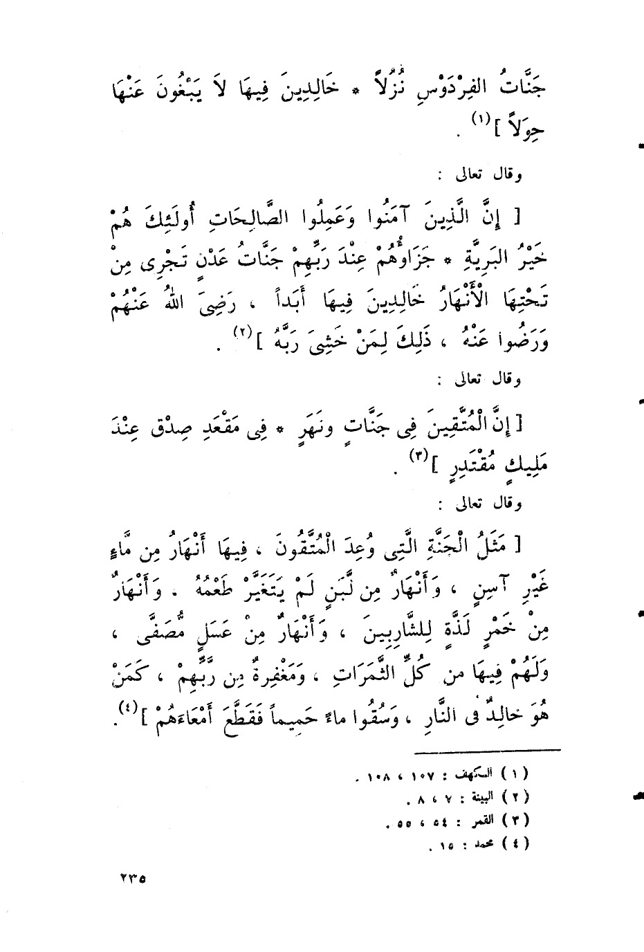 {إن الذين آمنوا وعملوا الصالحات أولئك هم خير البرية. جزاؤهم عند ربهم جنات عدنٍ تجري من تحتها الأنهار خالدين فيها أبداً، رضي الله عنهم ورضوا عنه، ذلك لمن خشي ربه} [البينة: 07 - 08].