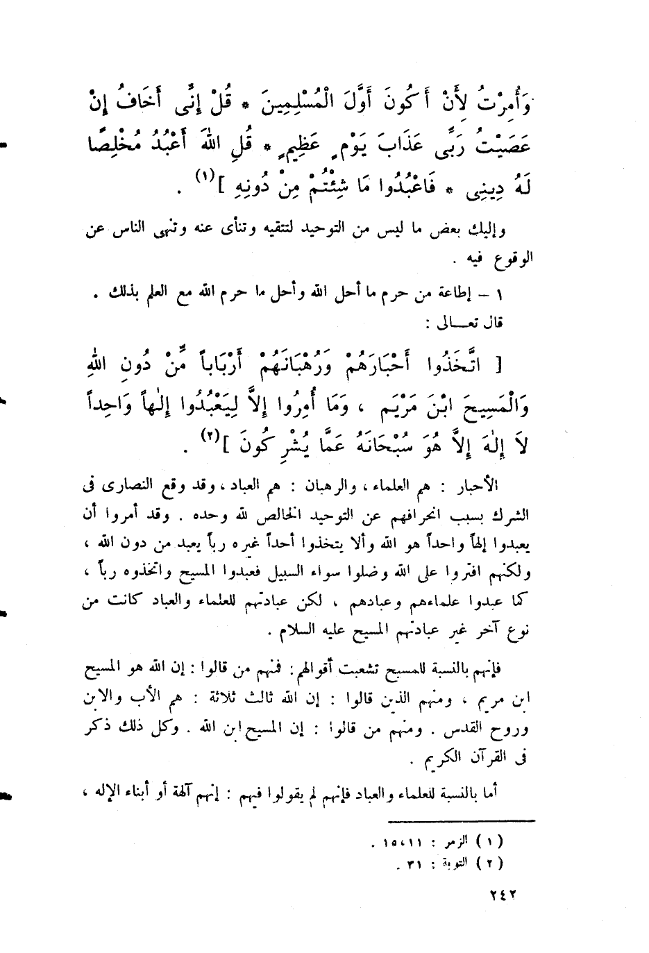 {اتخذوا أحبارهم ورهبانهم أرباباً من دون الله والمسيح ابن مريم، وما أمروا إلا ليعبدوا إلهاً واحداً لا إله إلا هو سبحانه عمّا يشركون} [التوبة: 31].