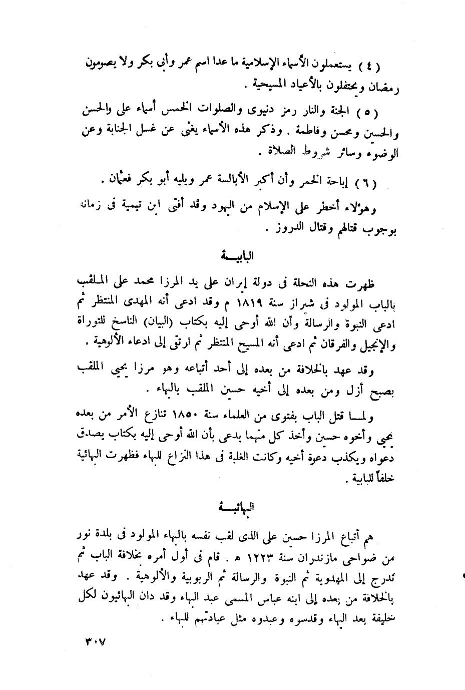 ظهرت هذه النحلة في دولة إيران على يد المرزا محمد علي الملقب بالباب المولود في سيراز سنة 1819 م وقد ادعى أنه المهدي المنتظر ثم ادعى النبوة والرسالة وأن الله أوحى إليه بكتاب (البيان) الناسخ للتوراة والإنجيل والفرقان ثم ادعى أنه المسيح المنتظر ثم ارتقى إلى ادعاء الألوهية.