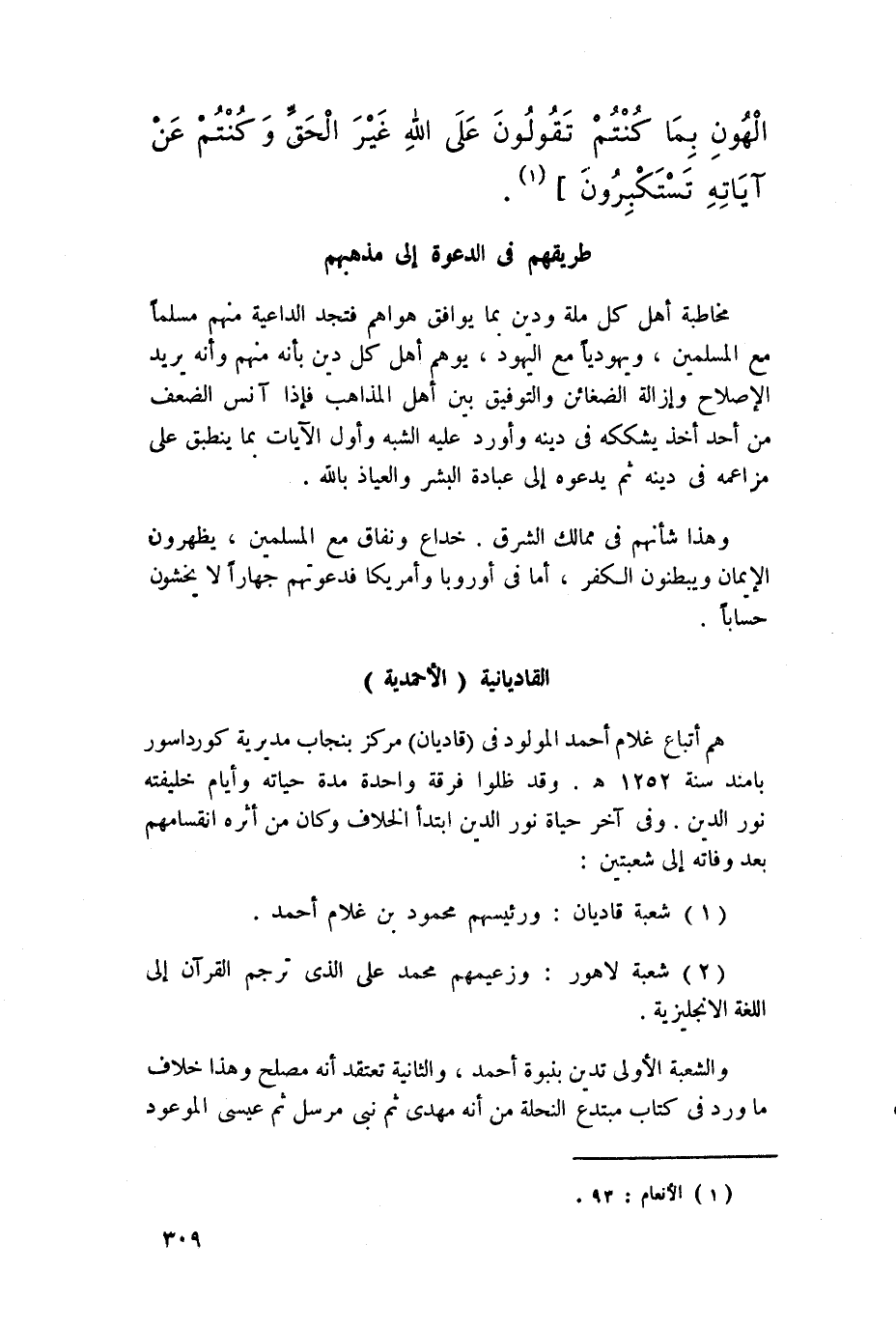 2 - شعبة لاهور: وزعيمهم محمد علي الذي ترجم القرآن إلى اللغة الانجليزية.