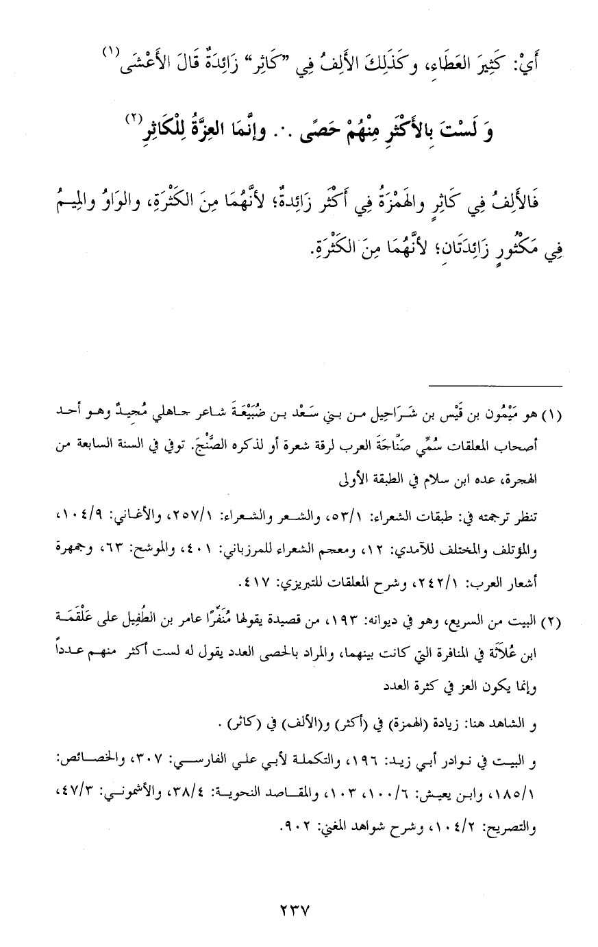 أي: كثير العطاء، وكذلك الألف في "كاثر" زائدةٌ قال الأعشى: