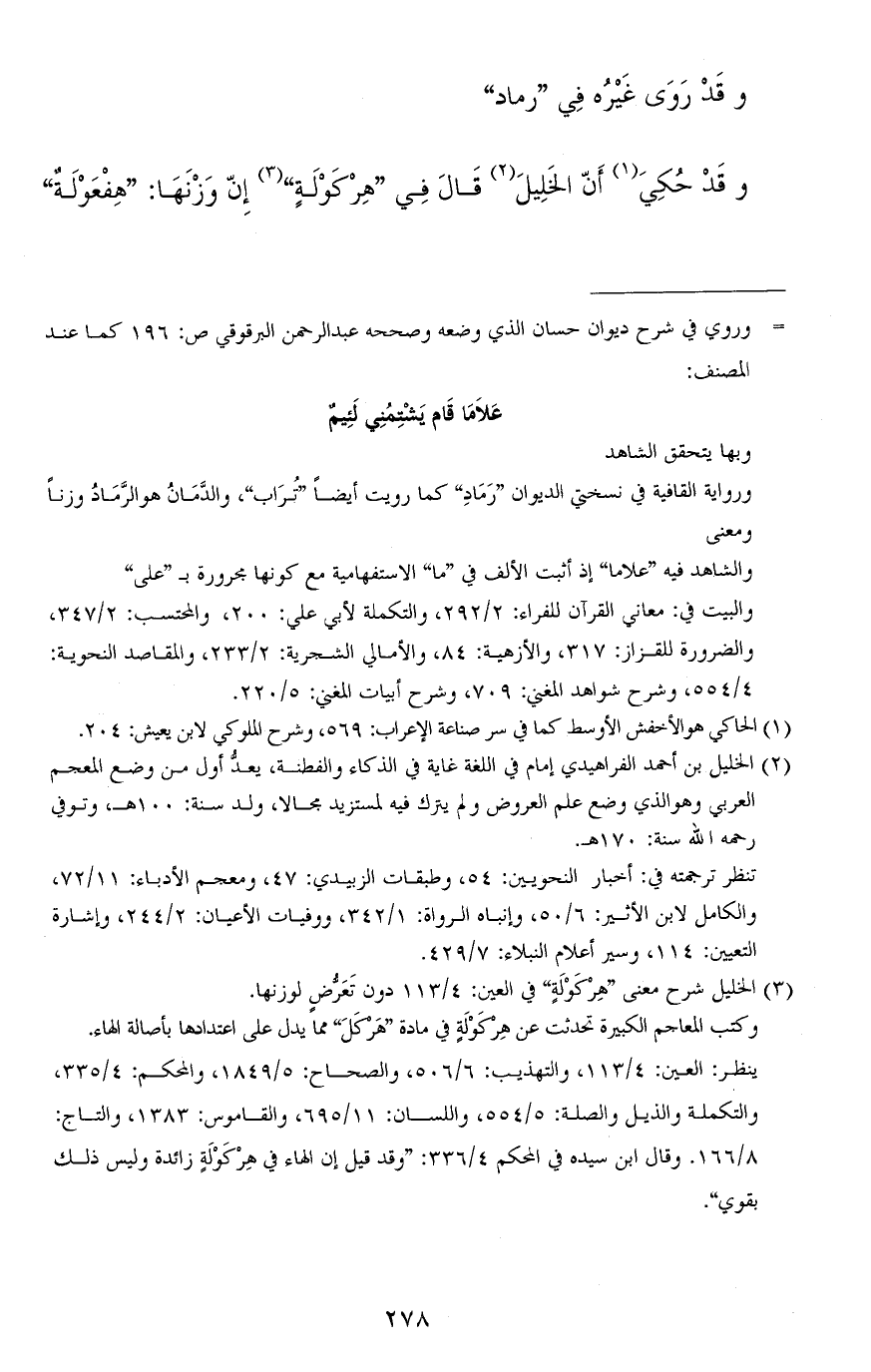 وقد حُكِيَ أنّ الخليل قال في "هِرْكَوْلَةٍ" إنّ وزنها: "هِفْعَوْلَةٌ"