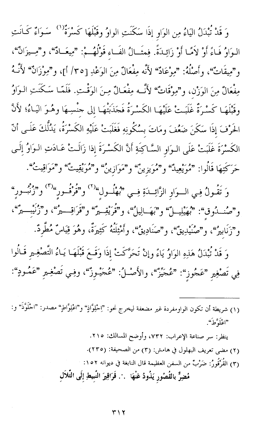 وقد تبدل هذه الواو ياء وإن تحرّكت إذا وقع قبلها ياء التّصغير قالوا في تصغير "عجوزٍ": "عُجَيِّزٌ"، والأصل: "عُجَيْوِزٌ"، وفي تصغير "عمودٍ"