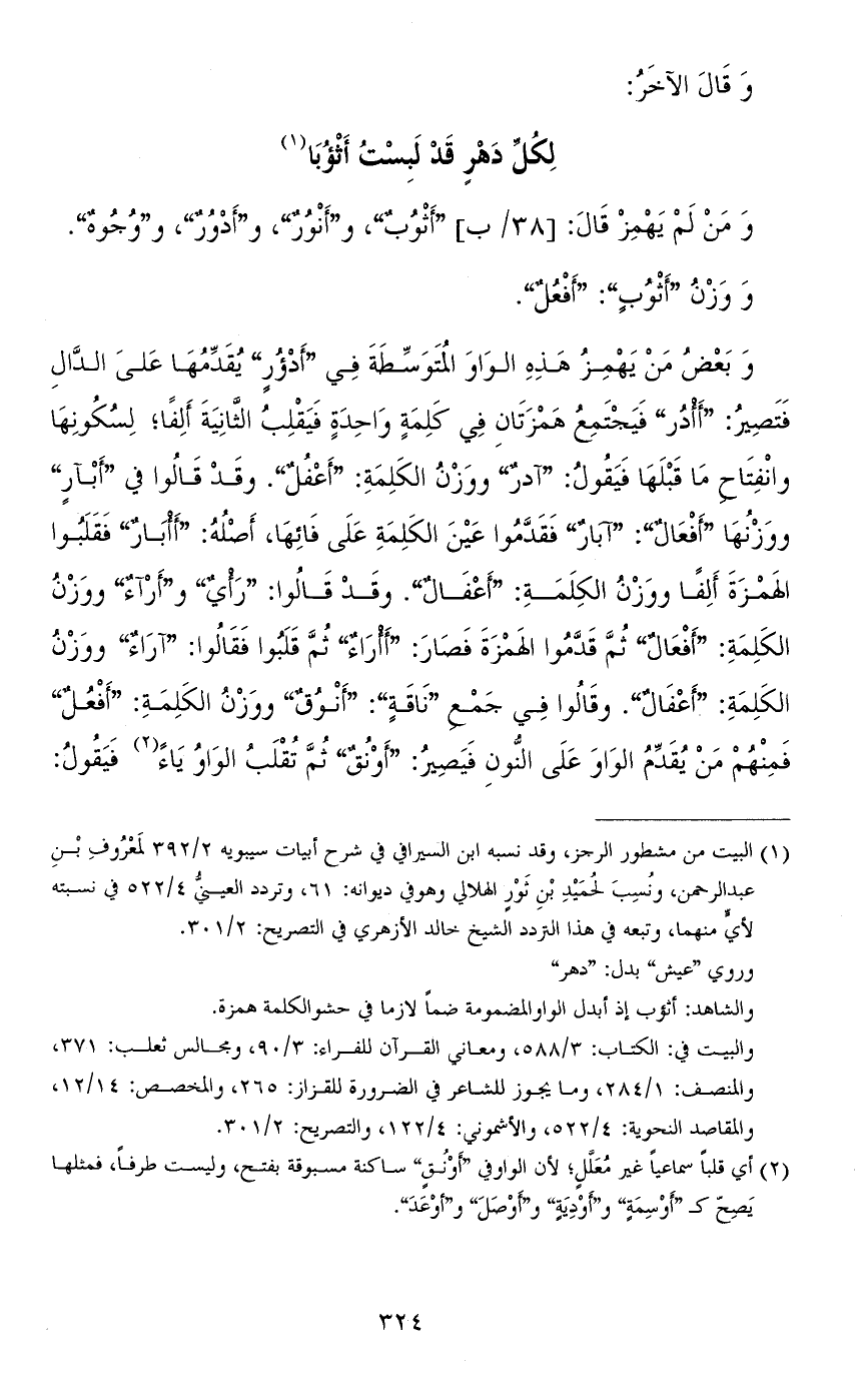 ومن لم يهمز قال: "أثْوُبٌ"، و"أنْوُرٌ"، و"أَدْوُرٌ"، و"وجوهٌ".