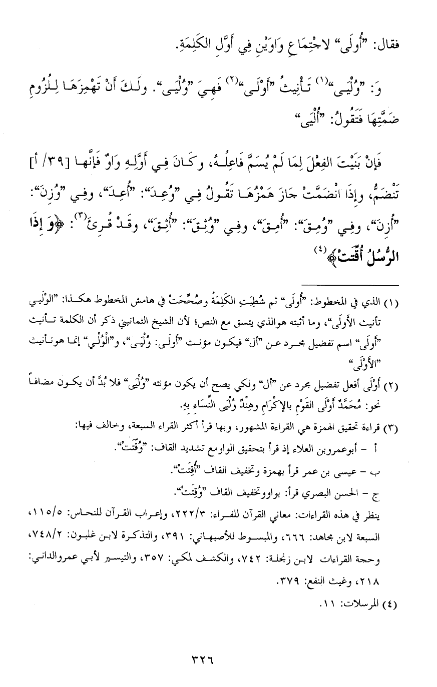 فقال: "أُولى" لاجتماع واوين في أوّل الكلمة.