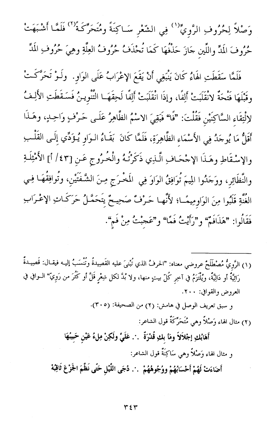 وَصْلاً لحروف الرَّوِيّ في الشّعر ساكنة ومتحرّكة فلمّا أشبهت حروف المدّ واللّين جاز حذفها كما تحذف حروف العلّة وهي حروف المدّ.