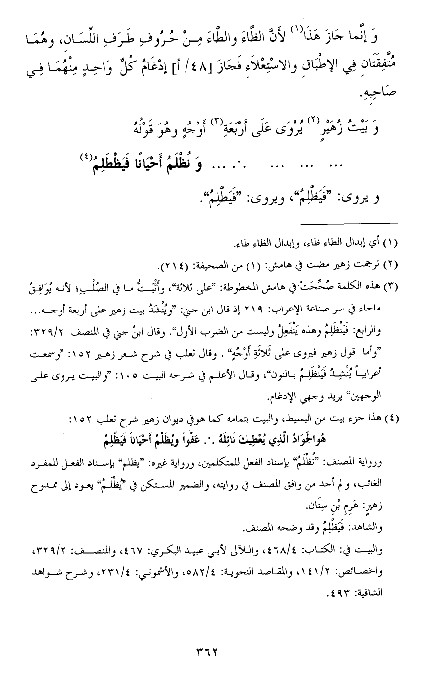 وبيت زهير يروى على أربعة أوجه وهو قوله: