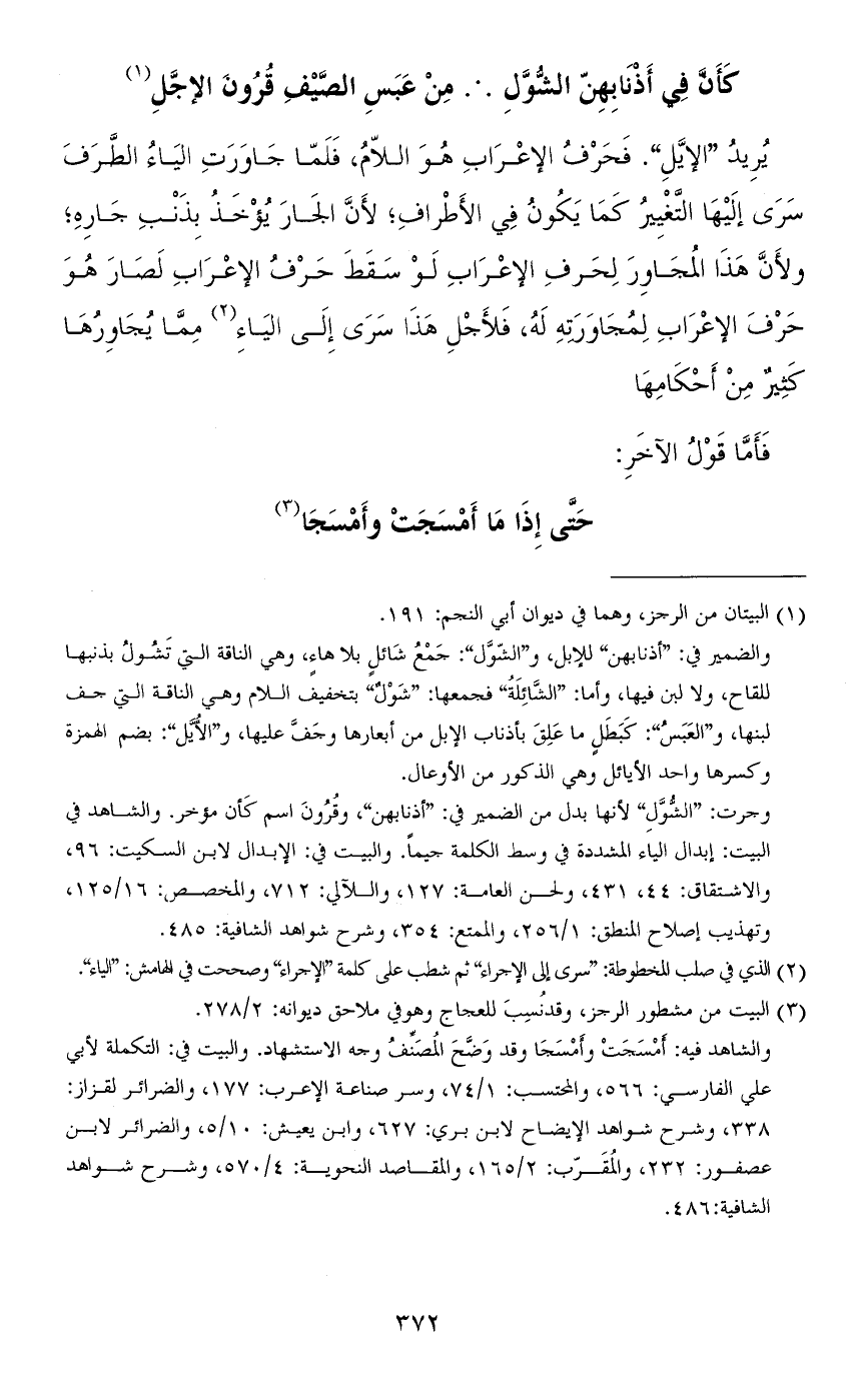 يريد "الإيَّلِ" فحرف الإعراب هو اللاّم، فلما جاورت الياء الطّرف سرى إليها التّغيير كما يكون في الأطراف، لأنّ الجار يؤخذ بذنب جاره، ولأنّ هذا المجاور لحرف الإعراب لو سقط حرف الإعراب لصار هو حرف الإعراب لمجاورته له، فلأجل هذا سرى إلى الياء ممّا يجاورها كثير من أحكامها.