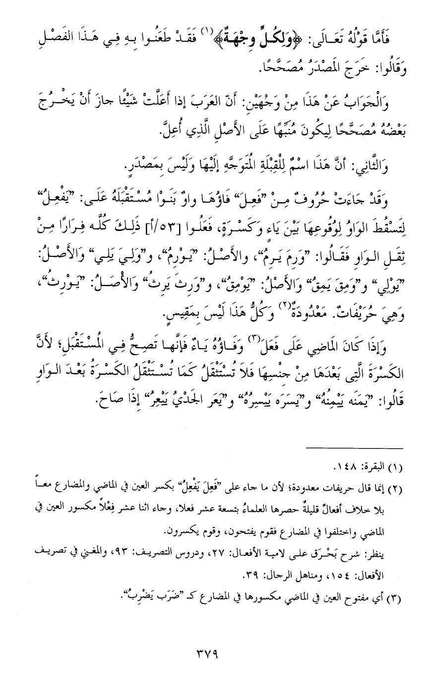 فأمّا قوله تعالى: (ولكلّ وجهة) فقد طعنوا به في هذا الفصل وقالوا: خرج المصدر مصحَّحًا.