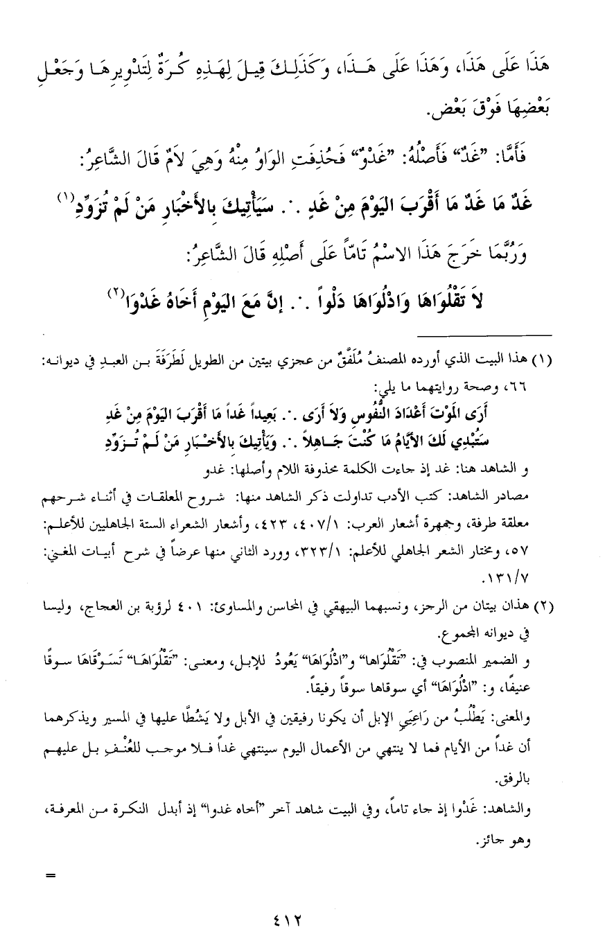 فأمّا: "غدٌ" فأصله: "غَدْوٌ" فحذفت الواو منه وهي لامٌ قال الشاعر: