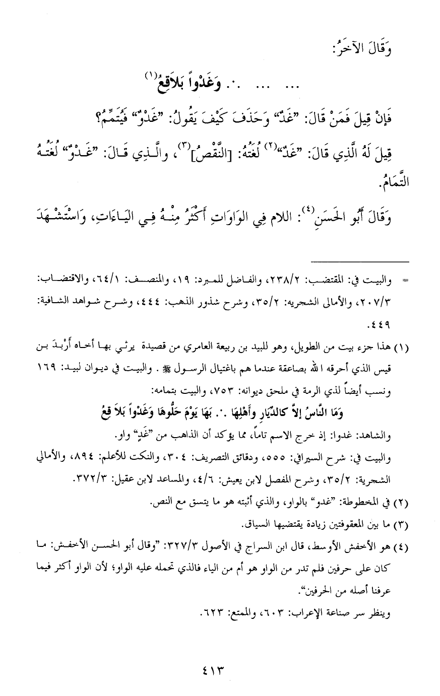 فإن قيل فمن قال: "غَدٌ" وحذف كيف يقول: "غَدْوٌ" فيتمِّم؟