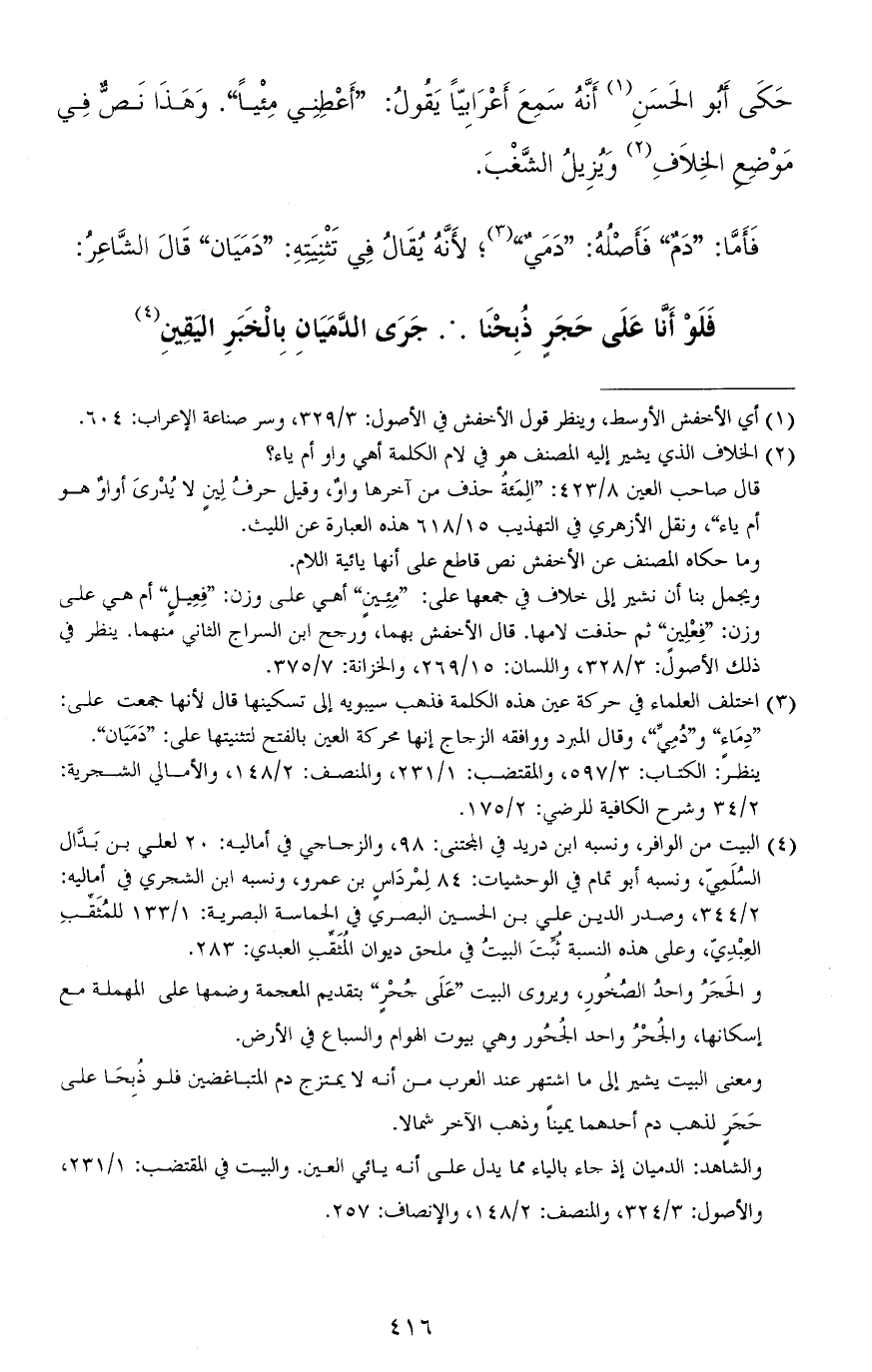 فأمّا: "دمٌ" فأصله: "دَمَيٌ"، لأنّه يقال في تثنيته: "دَمَيان" قال الشاعر:
