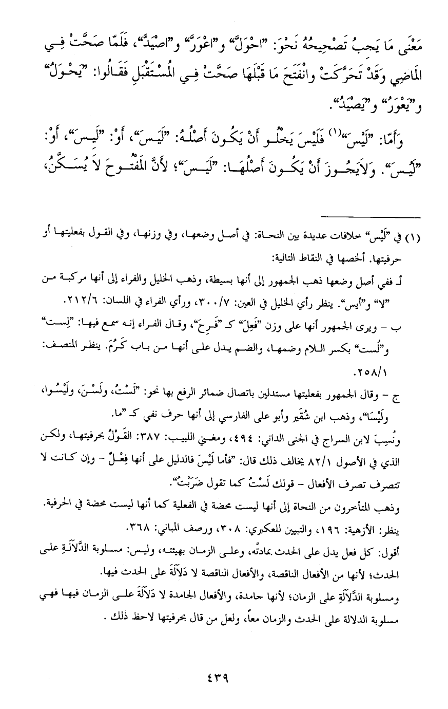 وأمّا "ليْسَ" فليس يخلو أن يكون أصله: "لَيَسَ"، أو "لَيِسَ"، أو "لَيُسَ". ولا يجوز أن يكون أصلها: "لَيَسَ" لأنّ المفتوح لا يُسَكَّن،