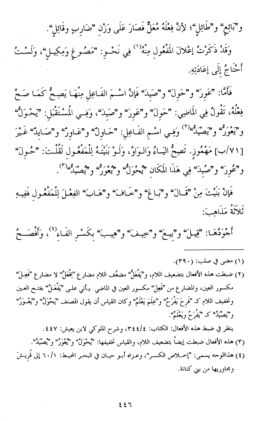 فإن بنيت من" قال" و"باعَ" و"خاف" و"هاب" الفعل للمفعول ففيه ثلاثة مذاهب: