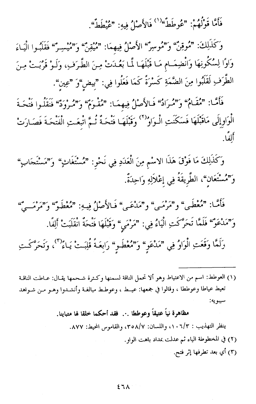 فأمّا قولهم: "عُوطَطٌ" فالأصل فيه: "عُيْطَطٌ".