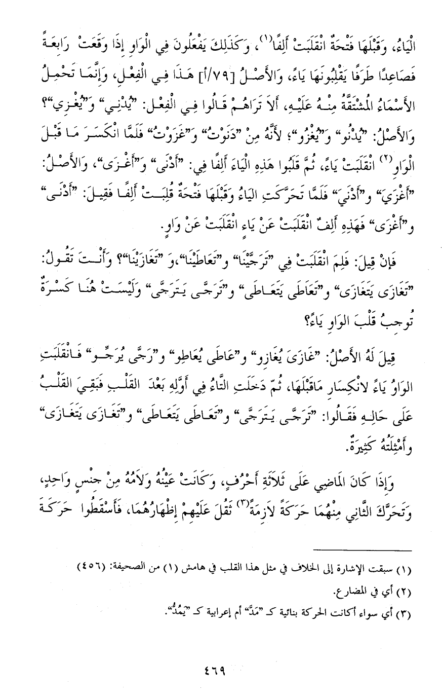الياء، وقبلها فتحة انقلبت ألفًان وكذلك يفعلون في الواو إذا وقعت رابعة فصاعدًا طرفًا يقلبونها ياء، والأصل هذا في الفعل، وإنّما تحمل الأسماء المشتقّة منه عليه، ألا تراهم قالوا في الفعل: "يُدْنِي" و"يُغْزِي" والأصل "يدْنُو" و"يغْزُو"؟؛ لأنّه من "دَنَوْتُ" و"غَزَوْتُ" فلمّا انكسر ما قبل الواو انقلبت ياء، ثم قلبوا هذه الياء ألفًا في: "أدْنَى" و"أغْزَى"، والأصل: "أغْزَيَ" و"أدْنَيَ" فلمّا تحرّكت الياء وقبلها فتحة قلبت ألفًا فقيل: "أدْنَى" و"أغْزَى" فهذه ألف انقلبت عن ياء انقلبت عن واو.