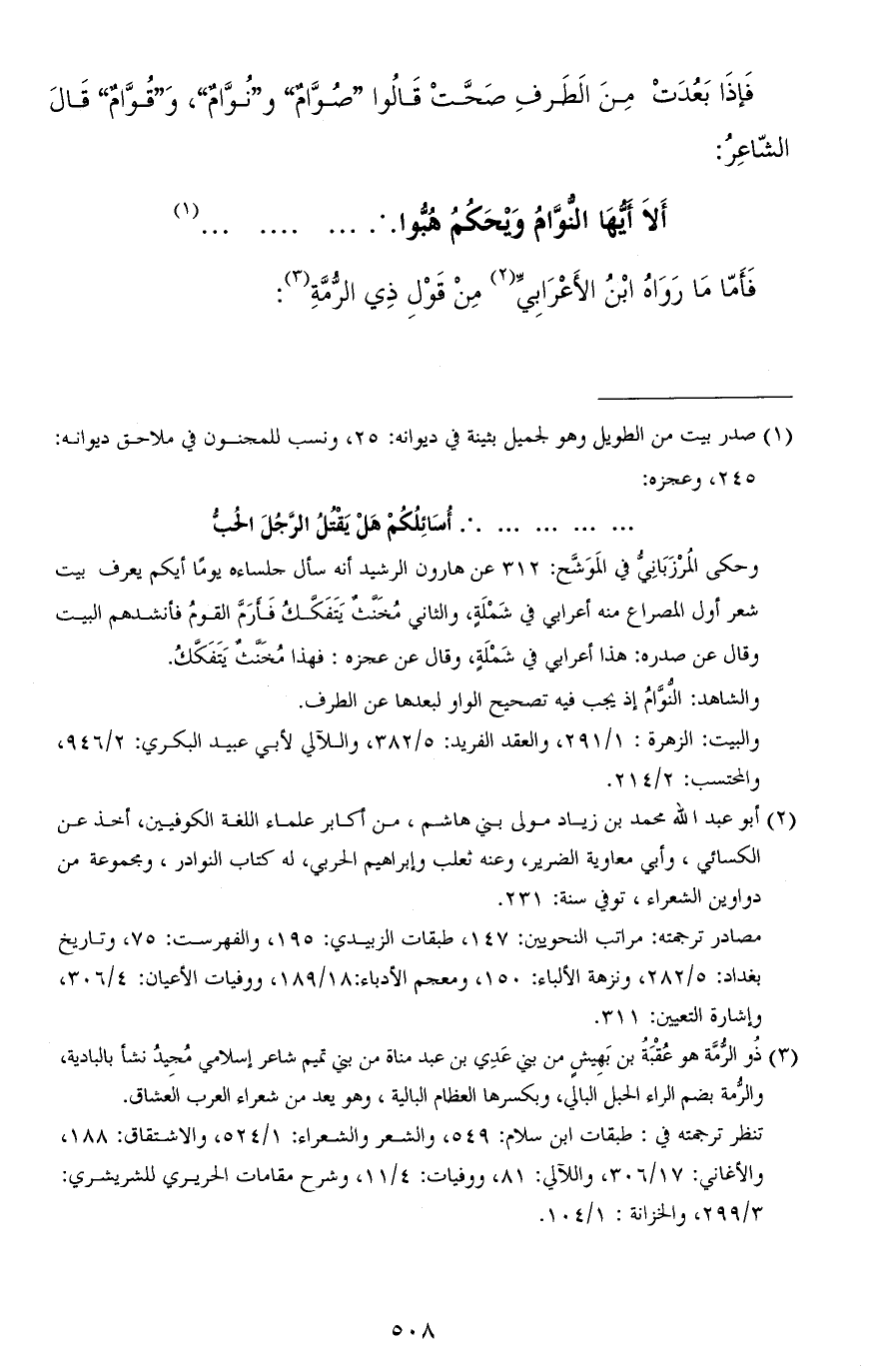 فإذا بعدت من الطّرف صحّت قالوا: "صُوَّامٌ" و"نُوّامٌ" و"قُوّامٌ" قال الشاعر: