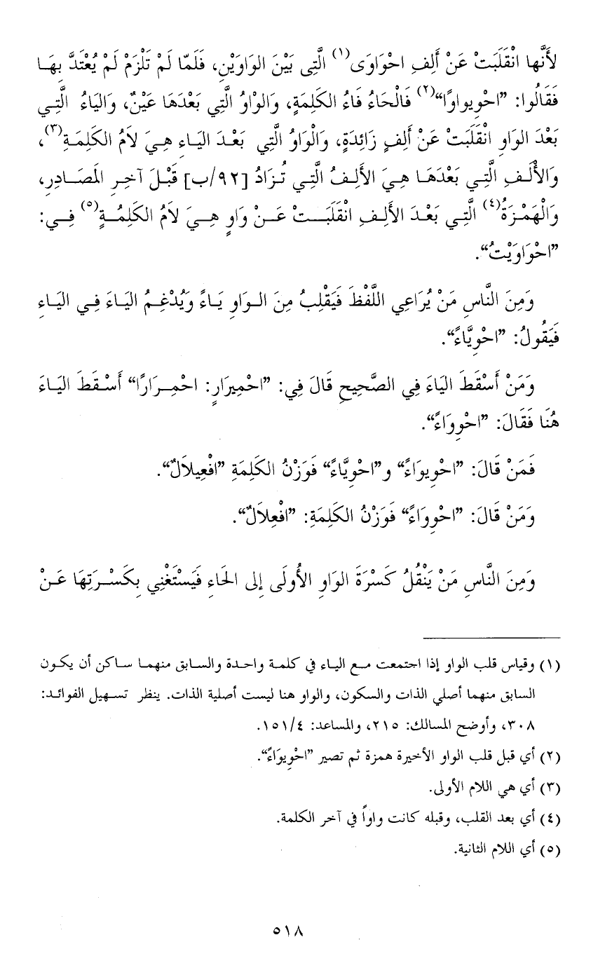 ومن النّاس من يراعي اللفظ فيقلب من الواو ياء ويدغم الياء في الياء فيقول: "احْوِيَّاء".