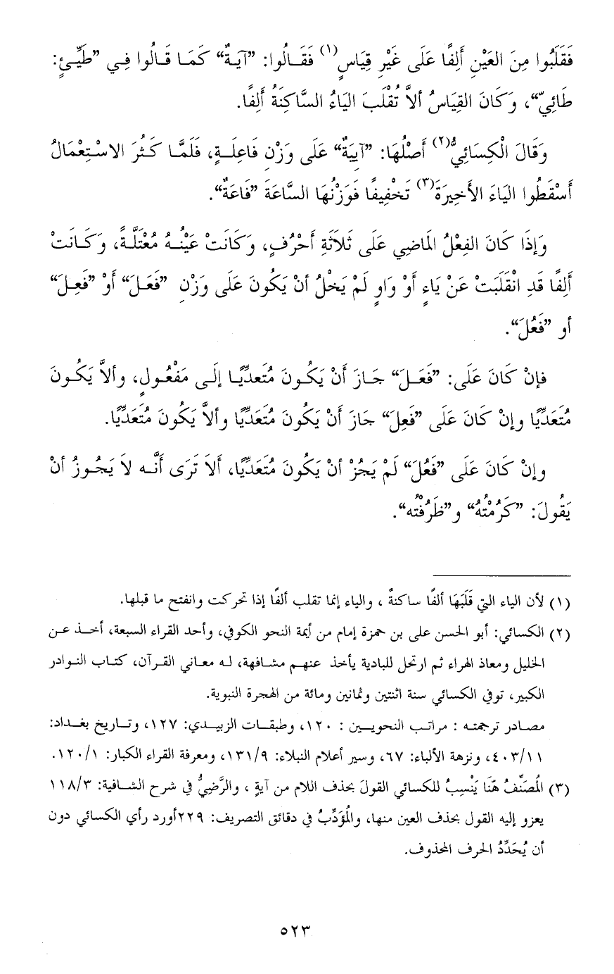 فقلبوا من العين ألفًا على غير قياس فقالوا: "آية" كما قالوا في "طَيِّئٍ: طائِيّ"، وكان القياس ألاّ تقلب الياء الساكنة ألفًا.
