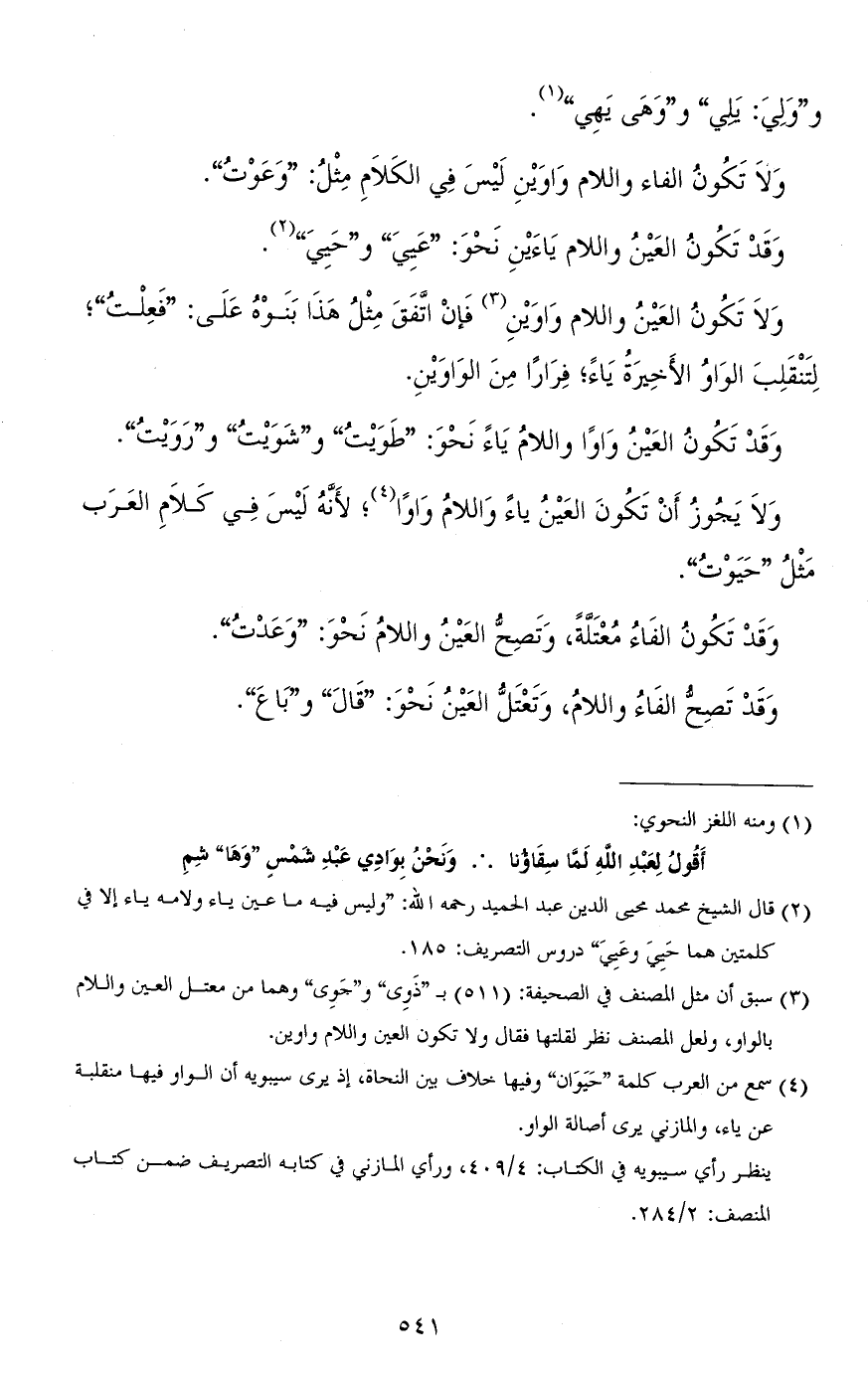 وقد تكون العين واوًا واللام ياء نحو: "طَوَيْتُ" و"شَوَيْتُ" و"رَوَيْتُ".