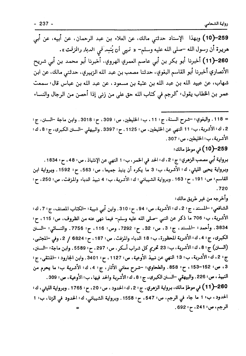 260 - (11) أَخْبَرَنَا أَبُو بَكْرِ بْنُ أَبِي عَاصِمٍ الْعُمَرِيُّ الْهَرَوِيُّ أَخْبَرَنَا أَبُو مُحَمَّدِ بْنُ أبي شُرَيْحٍ الأَنْصَارِيُّ أخبرنا أبو القاسم البغوي حدثني مُصْعَبُ بْنُ عَبْدِ اللَّهِ الزُّبَيْرِيُّ حَدَّثَنِي مَالِكٌ عَنِ ابْنِ شِهَابٍ عَنْ عُبَيْدِ اللَّهِ بْنِ عَبْدِ اللَّهِ بْنِ عُتْبَةَ بْنِ مَسْعُودٍ عَنْ عَبْدِ اللَّهِ بْنِ عَبَّاسٍ قَالَ سَمِعْتُ عُمَرَ بْنَ الْخَطَّابِ يَقُولُ الرَّجْمُ فِي كِتَابِ اللَّهِ حَقٌّ عَلَى مَنْ زَنَى إِذَا أُحْصِنَ مِنَ الرِّجَالِ وَالنِّسَاءِ -[238]- إِذَا قَامَتِ الْبَيِّنَةُ أَوْ كَانَ الْحَبَلُ أَوْ الاعْتِرَافُ.
