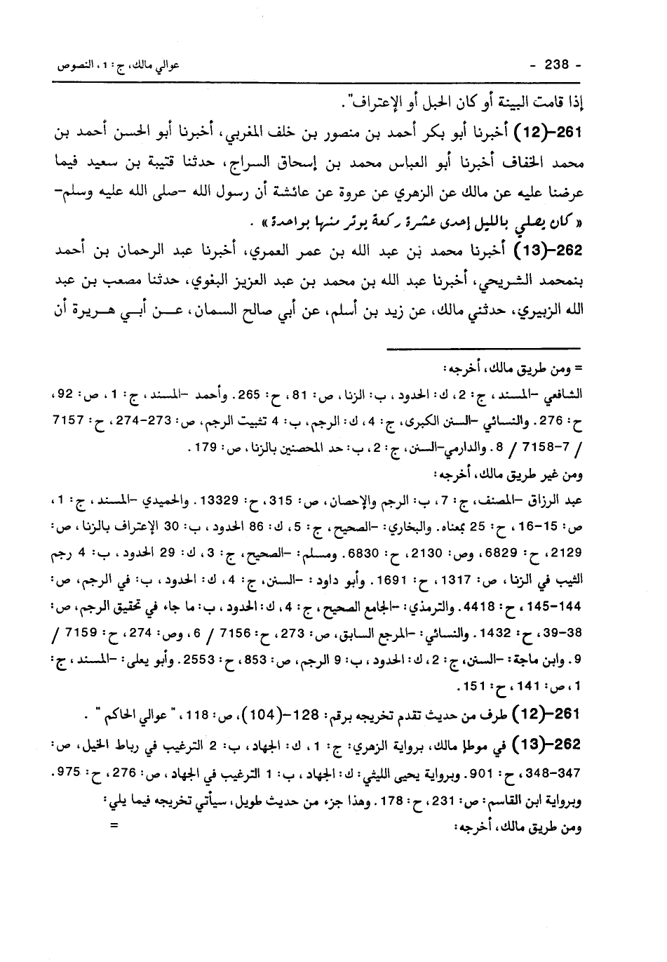 261 - (12) أَخْبَرَنَا أَبُو بَكْرٍ أَحْمَدُ بْنُ مَنْصُورِ بْنِ خَلَفٍ الْمَغْرِبِيُّ أَخْبَرَنَا أَبُو الْحَسَنِ أَحْمَدُ بْنُ مُحَمَّدٍ الْخَفَّافُ أَخْبَرَنَا أَبُو الْعَبَّاسِ مُحَمَّدُ بْنُ إِسْحَاقَ السَّرَّاجُ حَدَّثَنَا قُتَيْبَةُ بْنُ سَعِيدٍ فِيمَا عَرَضْنَا عَلَيْهِ عَنْ مَالِكٍ عَنِ الزُّهْرِيِّ عَنْ عُرْوَةَ عَنْ عَائِشَةَ أَنَّ رَسُولَ اللَّهِ صَلَّى اللَّهُ عَلَيْهِ وَسَلَّمَ كَانَ يُصَلِّي بِاللَّيْلِ إِحْدَى عَشْرَةَ رَكْعَةً يُوتِرُ مِنْهَا بِوَاحِدَةٍ.