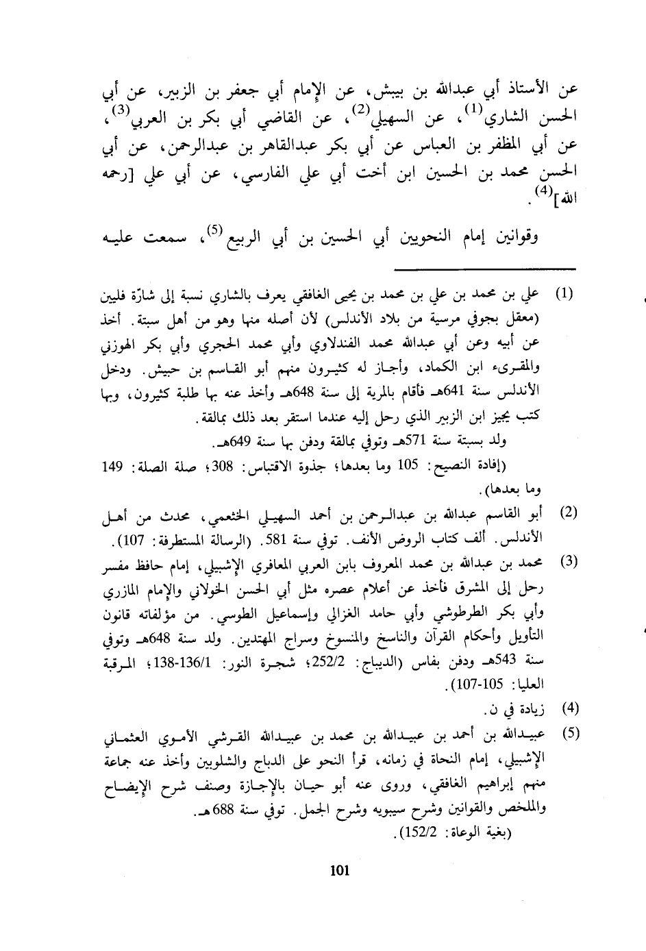 عَن الْأُسْتَاذ أبي عبد الله بن بيبش عَن الإِمَام أبي جَعْفَر بن الزبير عَن أبي الْحسن الشاري عَن السُّهيْلي عَن القَاضِي أبي بكر بن الْعَرَبِيّ عَن أبي المظفر بن الْعَبَّاس عَن أبي بكر عبد القاهر بن عبد الرَّحْمَن عَن أبي الْحسن مُحَمَّد بن الْحُسَيْن ابْن أُخْت أبي عَليّ الْفَارِسِي عَن أبي عَليّ رَحمَه الله