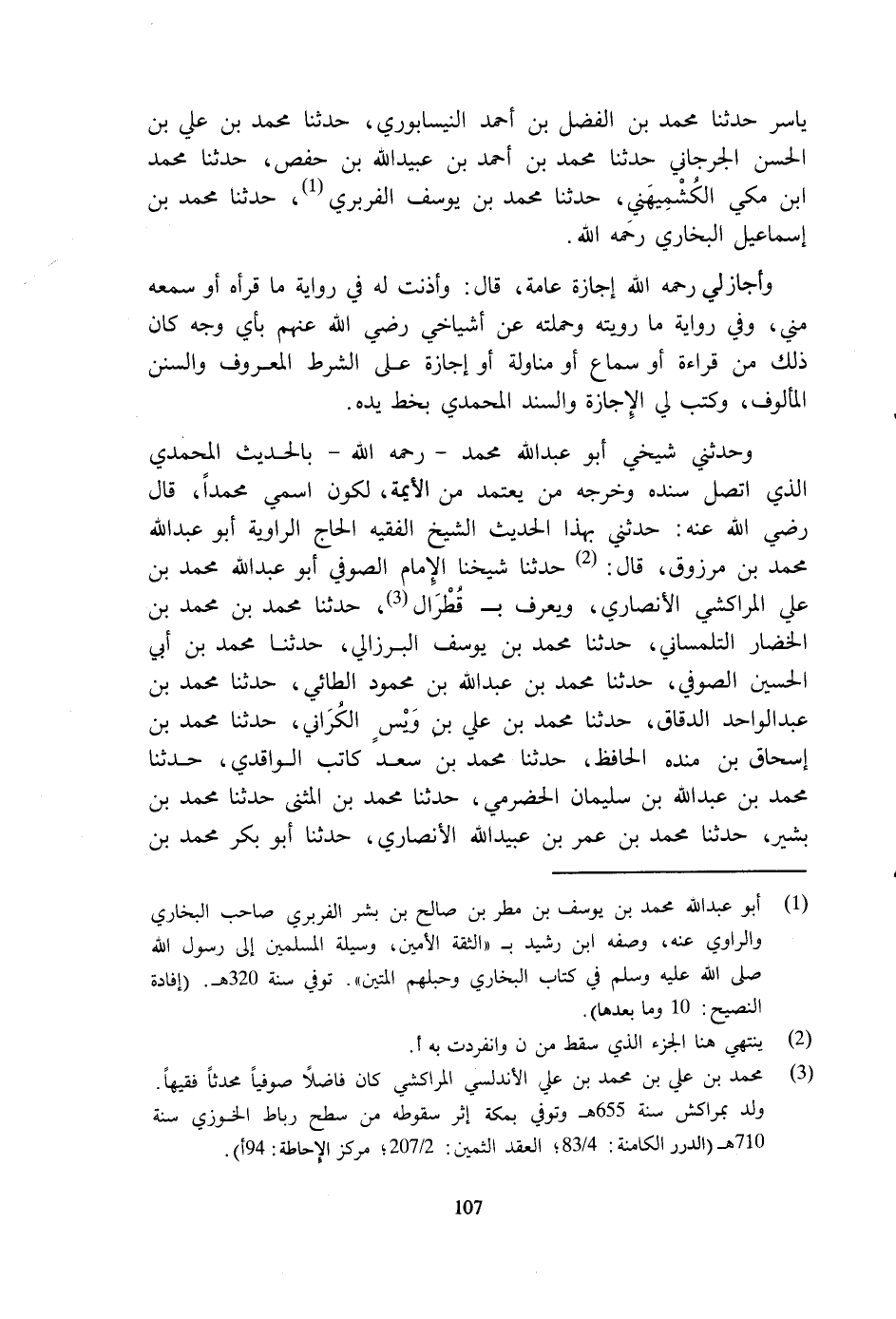 يَاسر حَدثنَا مُحَمَّد بن الْفضل بن أَحْمد النَّيْسَابُورِي حَدثنَا مُحَمَّد بن عَليّ بن الْحسن الْجِرْجَانِيّ حَدثنَا مُحَمَّد بن أَحْمد بن عبيد الله بن حَفْص حَدثنَا مُحَمَّد ابْن مكي الْكشميهني حَدثنَا مُحَمَّد بن يُوسُف الْفربرِي حَدثنَا مُحَمَّد بن إِسْمَاعِيل البُخَارِيّ رَحمَه الله