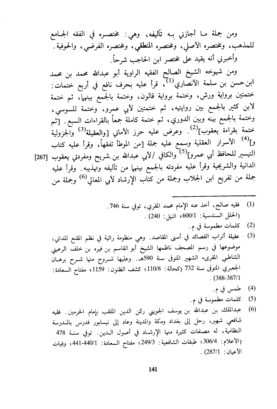 وَمن جملَة مَا أجازني بِهِ تآليفه وَهِي مُخْتَصره فِي الْفِقْه الْجَامِع للْمَذْهَب ومختصره الْأَصْلِيّ ومختصره المنطقي ومختصره الفرضي والحوفية
