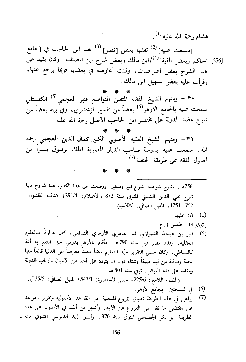 31 - وَمِنْهُم الشَّيْخ الْفَقِيه الأصولي الْكَبِير كَمَال الدّين العجمي رَحمَه الله سَمِعت عَلَيْهِ بمدرسة صَاحب الديار المصرية الْملك برقوق يَسِيرا من أصُول الْفِقْه على طَريقَة الْحَنَفِيَّة