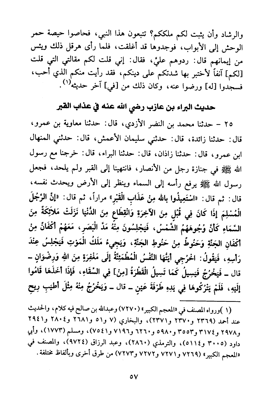 حديث البراء بن عازب رضي الله عنه في عذاب القبر
