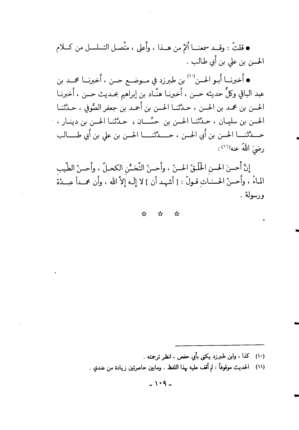 أَخْبَرَنَا أَبُو الْحَسَنِ بْنُ طَبَرْزَدْ فِي مَوْضِعٍ حَسَنٍ، أَخْبَرَنَا مُحَمَّدُ بْنُ عَبْدِ الْبَاقِي وَكُلُّ حَدِيثِهِ حَسَنٌ، أَخْبَرَنَا هَنَّادُ بْنُ إِبْرَاهِيمَ بِحَدِيثٍ حَسَنٍ، أَخْبَرَنَا الْحَسَنُ بْنُ مُحَمَّدِ بْنِ الْحَسَنِ، حَدَّثَنَا الْحَسَنُ بْنُ أَحْمَدَ بْنِ جَعْفَرٍ الصُّوفِيُّ، حَدَّثَنَا الْحَسَنُ بْنُ سُلِيمَانَ، حَدَّثَنَا الْحَسَنُ بْنُ حَسَّانَ، حَدَّثَنَا الْحَسَنُ بْنُ دِينَارٍ، حَدَّثَنَا الْحَسَنُ بْنُ أَبِي الْحَسَنِ، حَدَّثَنَا الْحَسَنُ بْنُ عَلِيِّ بْنِ أَبِي طَالِبٍ رَضِيَ اللَّهُ عَنْهُ: