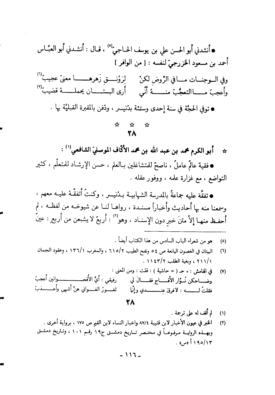 28- أَبُو الْكَرَمِ مُحَمَّدُ بْنُ عَبْدِ اللَّهِ بْنِ مُحَمَّدٍ الأَكَّافُ الْمَوْصِلِيُّ الشَّافِعِيُّ: