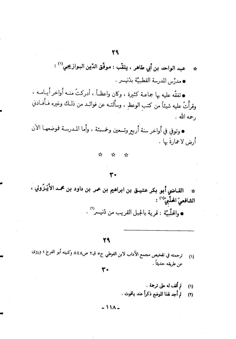 29- عَبْدُ الْوَاحِدِ بْنُ أَبِي طَاهِرٍ، يُلَقَّبُ: مُوَفَّقُ الدِّينِ الْبُوَازِيجِيُّ: