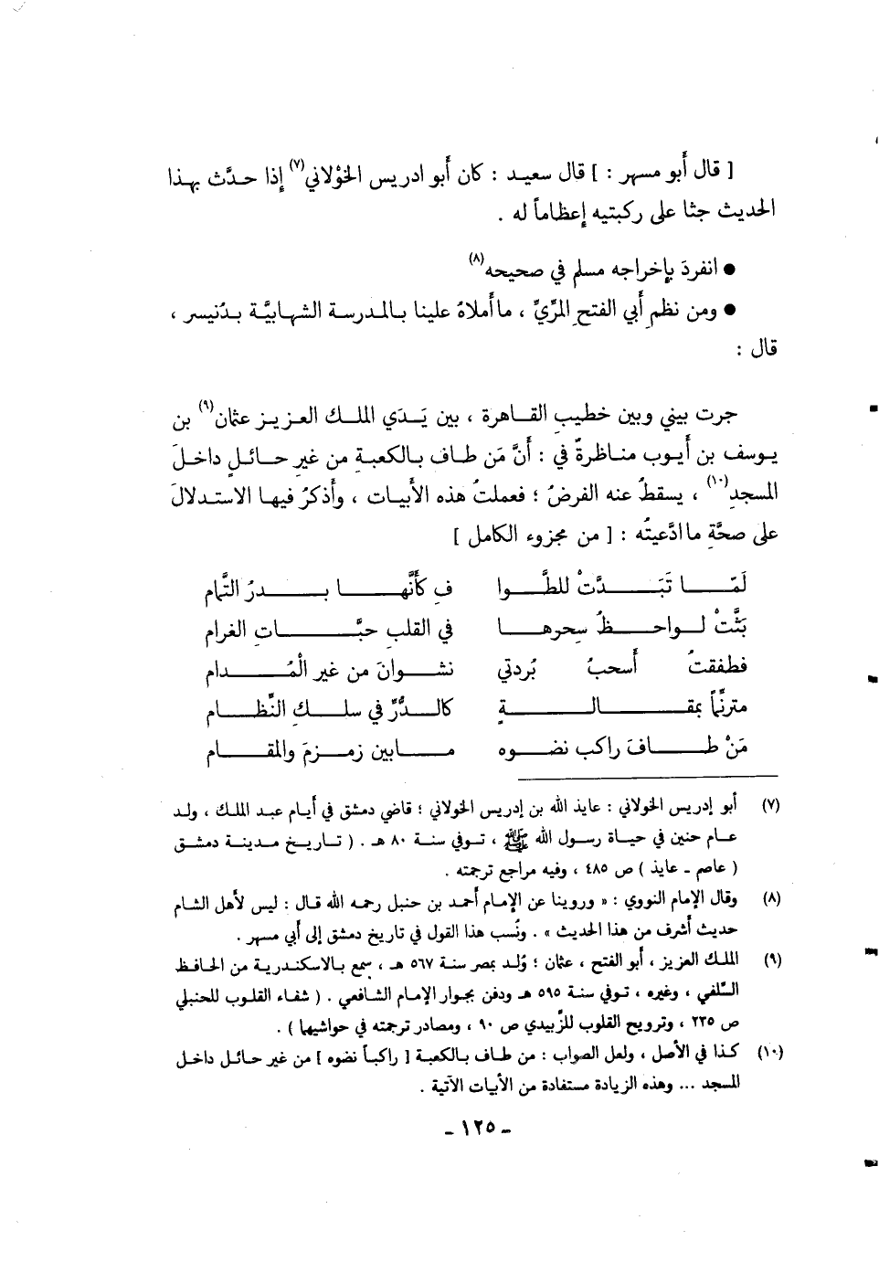 جَرَتْ بَيْنِي وَبَيْنَ خَطِيبِ الْقَاهِرَةِ، بَيْنَ يَدَيِ الْمَلِكِ الْعَزِيزِ عُثْمَانَ بْنِ يُوسُفَ بْنِ أَيُّوبَ مناظرةٌ فِي: أَنَّ مَنْ طَافَ بِالْكَعْبَةِ مِنْ غَيْرِ حائلٍ دَاخَلَ الْمَسْجِدِ، يَسْقُطُ عَنْهُ الْفَرْضُ؛ فَعَمَلْتُ هَذِهِ الأَبْيَاتِ، وَأَذْكُرُ فِيهَا الاسْتِدْلالَ عَلَى صحة ما ادعيته: