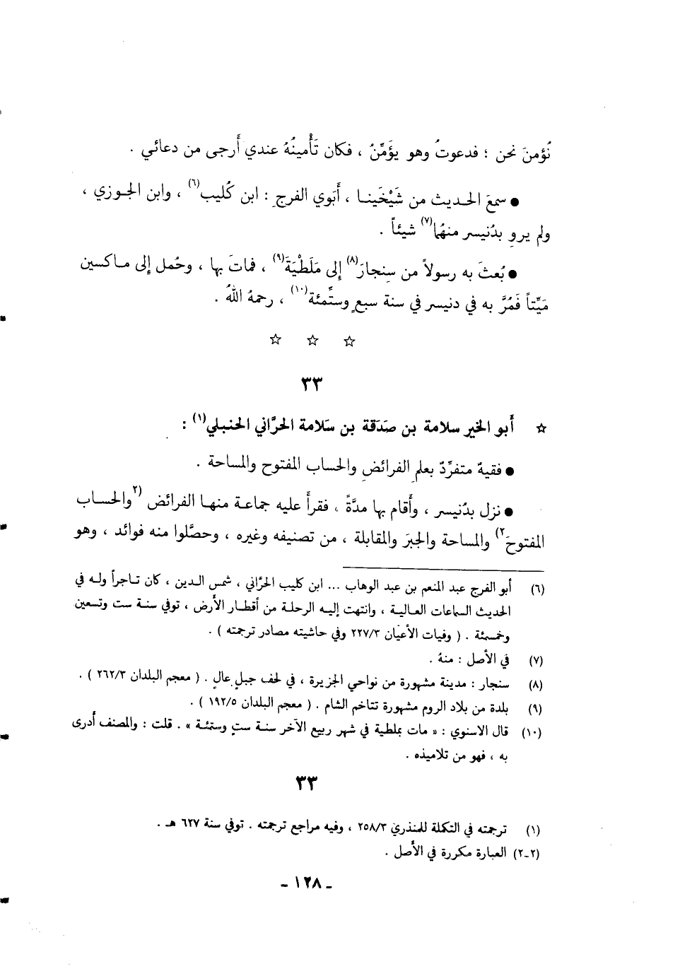 33- أَبُو الْخَيْرِ سَلامَةُ بْنُ صَدَقَةَ بْنِ سَلامَةَ الْحَرَّانِيُّ الْحَنْبَلِيُّ: