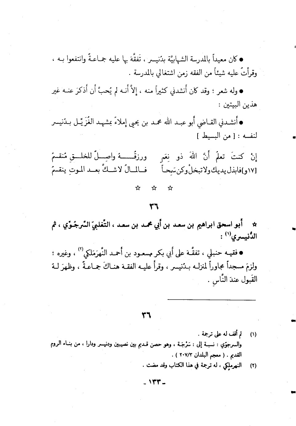 36- أَبُو إِسْحَاقَ إِبْرَاهِيمُ بْنُ سَعْدِ بْنِ أَبِي مُحَمَّدِ بْنِ سَعْدٍ، التَّغْلَبِيُّ السَّرْجُوِّيُّ، ثم الدنيسيري: