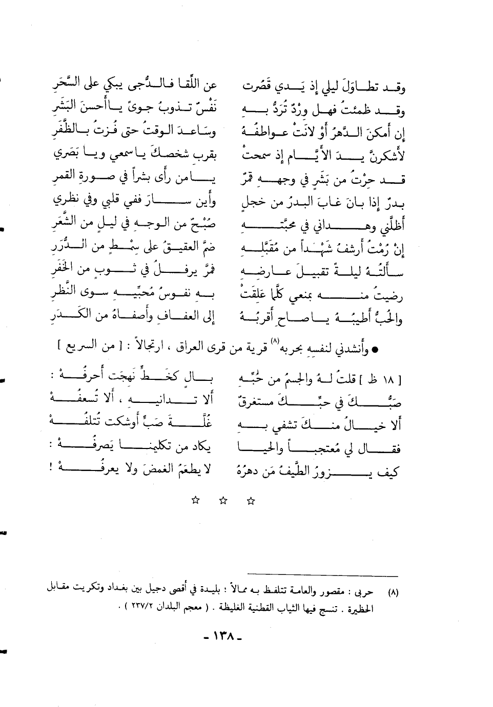 وَأَنْشَدَنِي لِنَفْسِهِ بِحَرْبِهِ قَرْيَةً من قرى العراق، ارتجالاً: