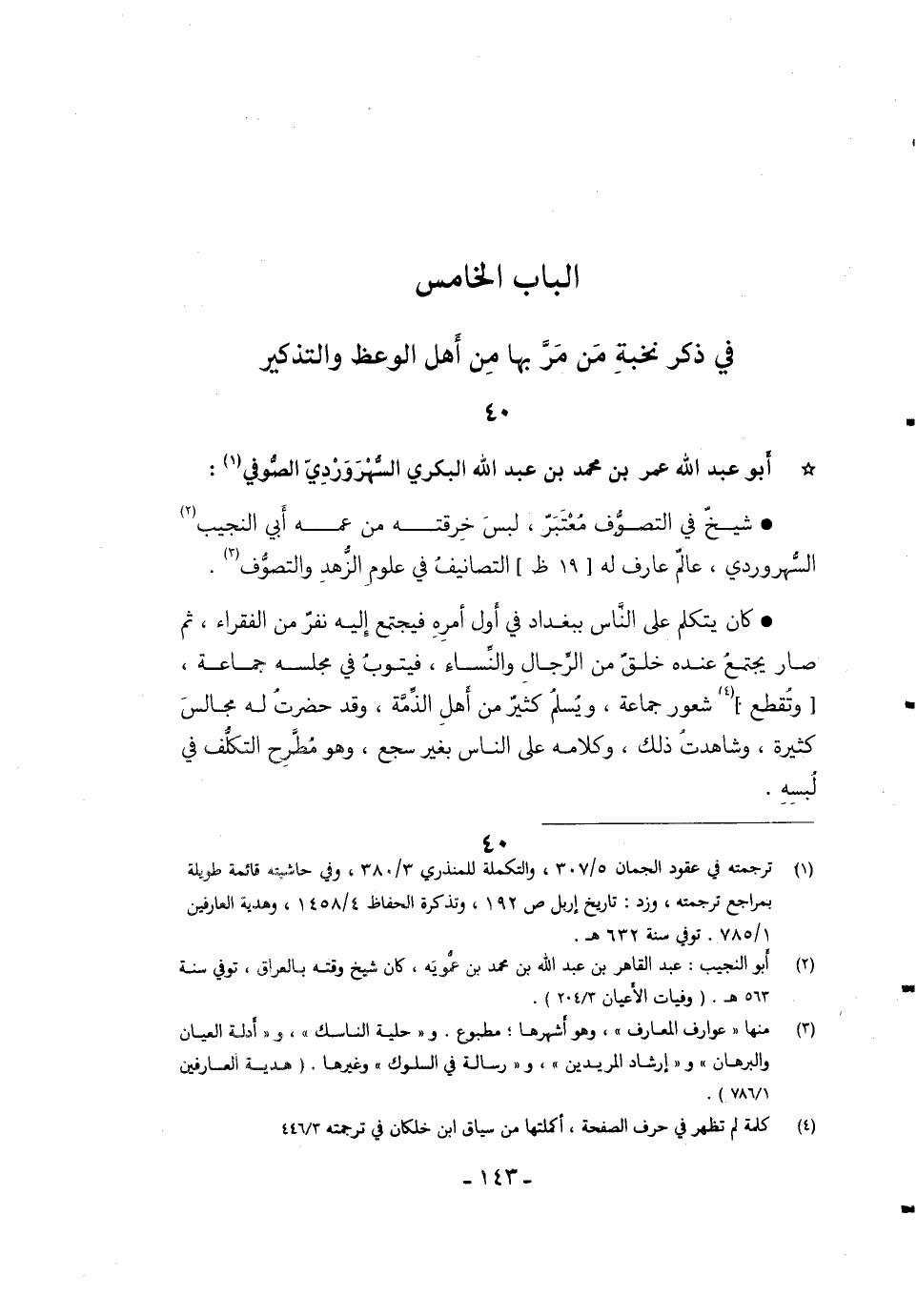 40- أَبُو عَبْدِ اللَّهِ عُمَرُ بْنُ مُحَمَّدِ بْنِ عَبْدِ اللَّهِ الْبَكْرِيُّ السُّهْرَوَرْدِيُّ الصُّوفِيُّ: