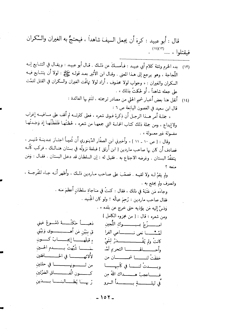 قَالَ: أَبُو عُبَيْدٍ: كَرِهَ أَنْ يَجْعَلَ السَّيْفَ شَاهِدًا، فَيَحْتَجُّ بِهِ الْغَيْرَانُ وَالسَّكْرَانُ فَيَقْتُلُوا.. .. ..