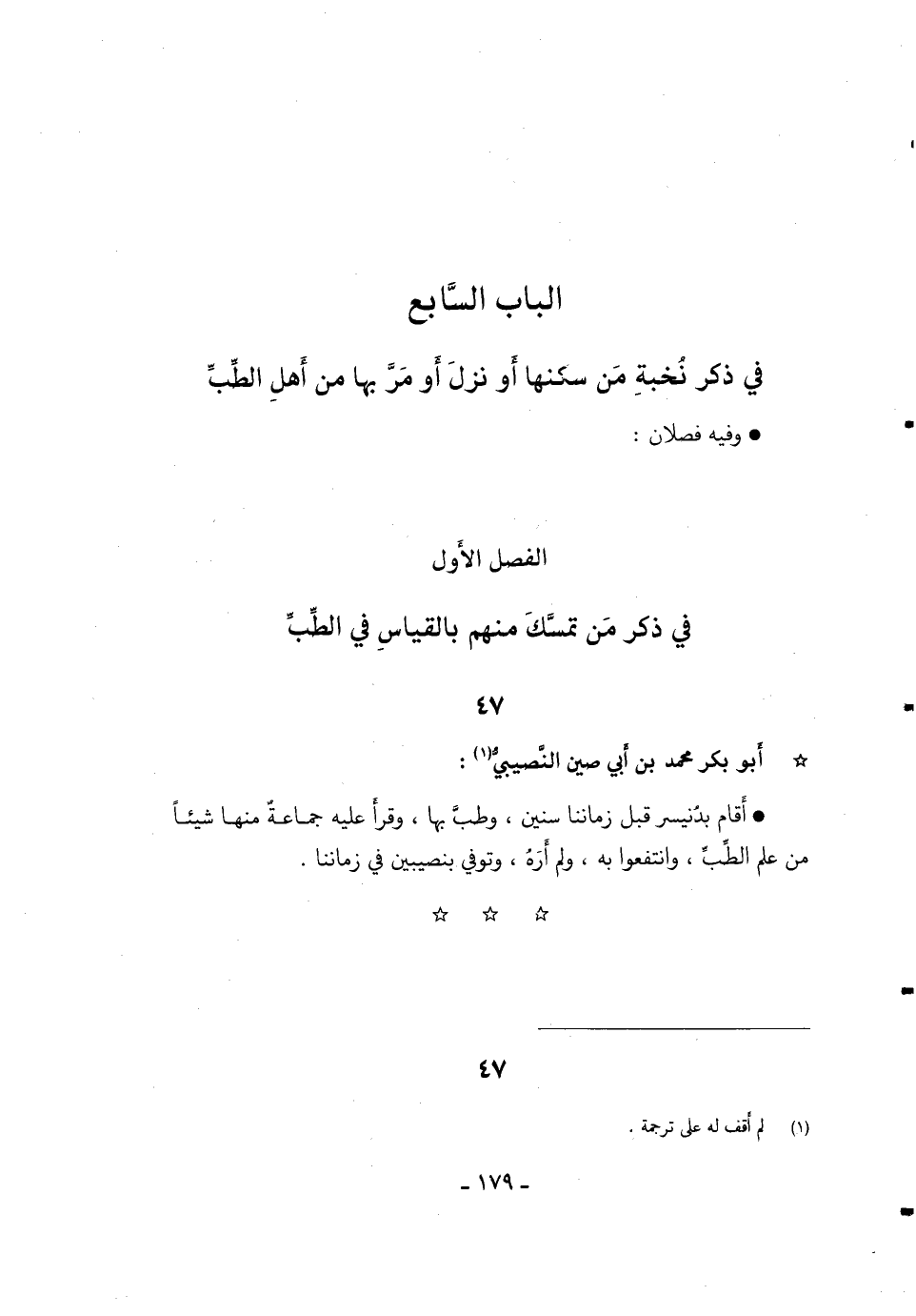 الْبَابُ السَّابِعُ فِي ذِكْرِ نُخْبَةِ مَنْ سَكَنَهَا أَوْ نَزَلَ أَوْ مَرَّ بِهَا مِنْ أَهْلِ الطِّبِّ