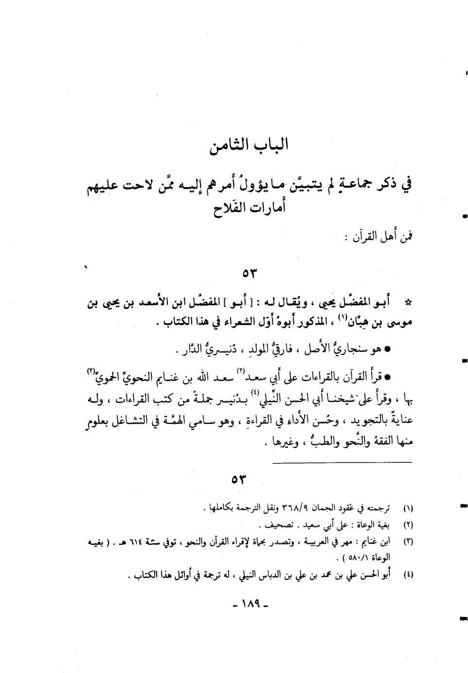 الْبَابُ الثَّامِنُ فِي ذِكْرِ جماعةٍ لَمْ يَتَبَيَّنْ مَا يَؤُولُ أَمْرُهُمْ إِلَيْهِ مِمِّنْ لاحَتْ عَلَيْهِمْ أَمَارَاتُ الْفَلاحِ