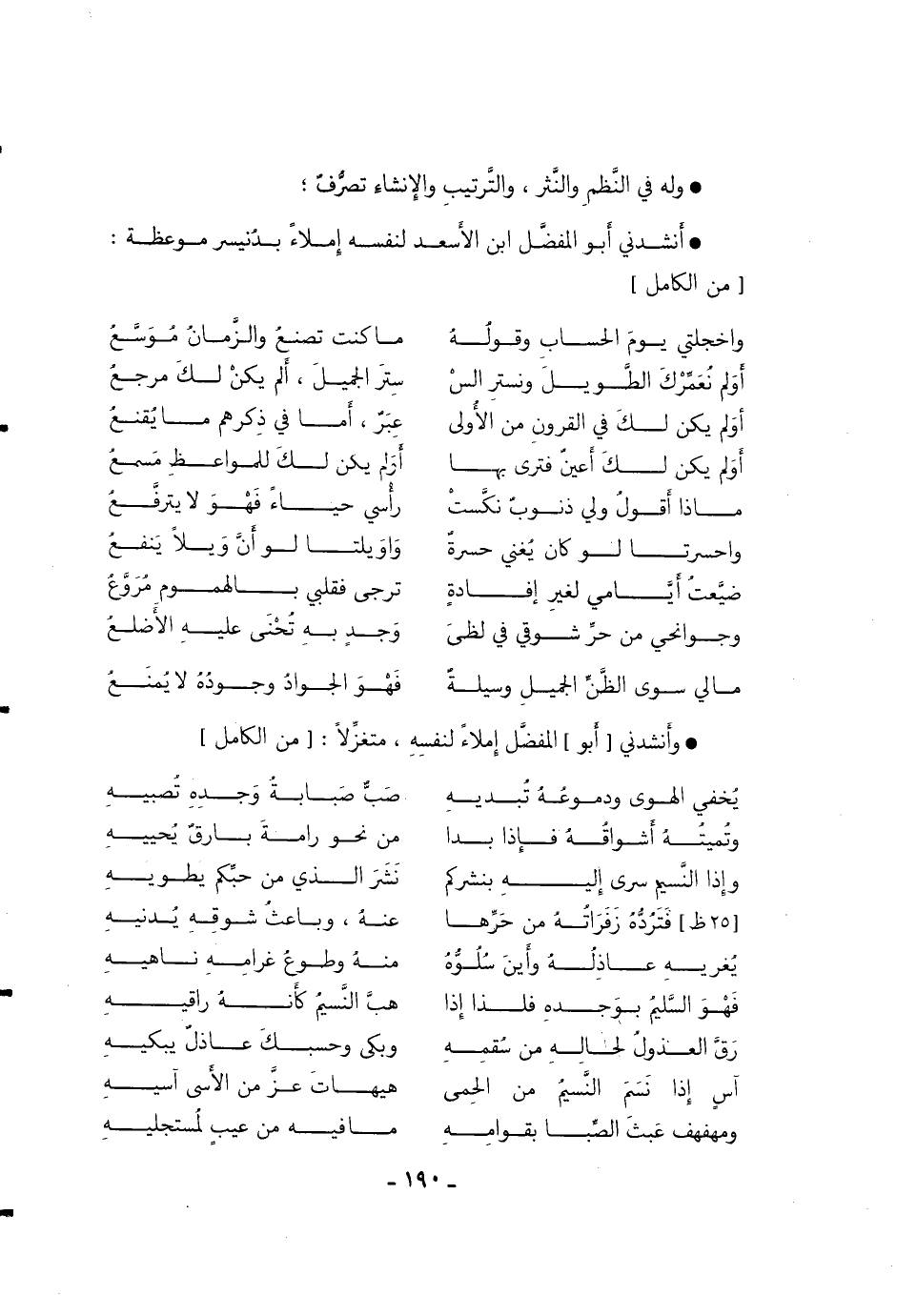 وَأَنْشَدَنِي [أَبُو] الْمُفَضَّلِ إملاءً لنفسه، متغزلاً: